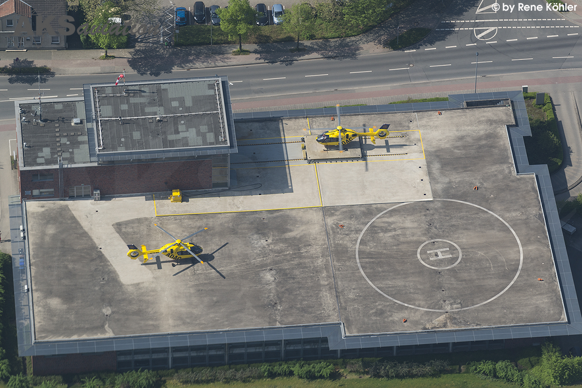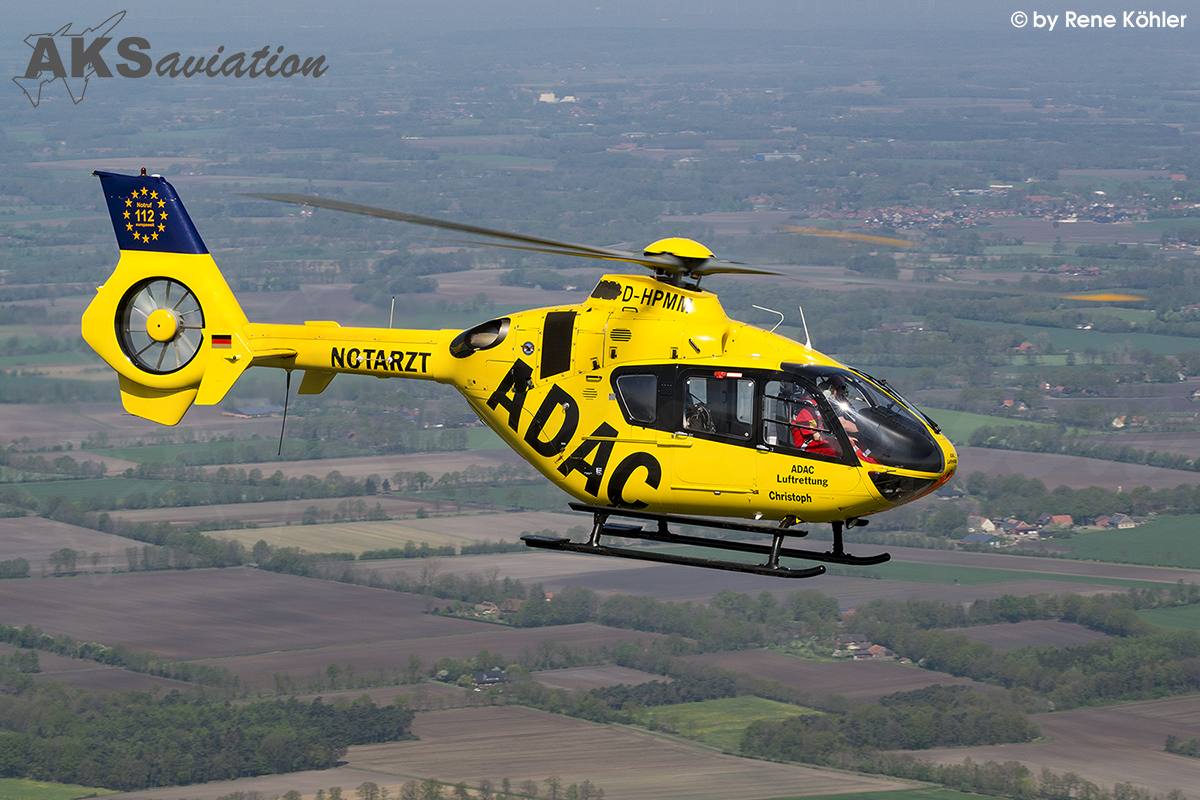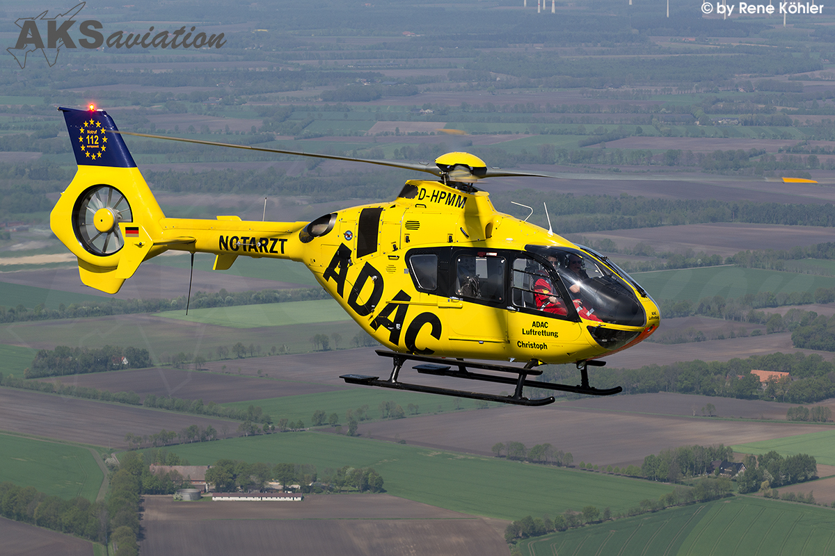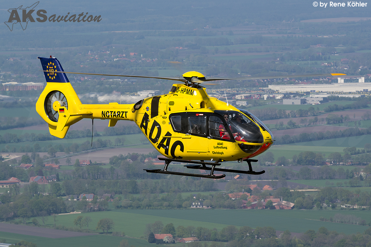 Ein Ausflug an einem sonnigen Samstag im April sollte uns ursprünglich zur Firma Agrarflug Helilift nach Ahlen führen. Eine zunächst beiläufig beachtete Info, dass der Rettungshubschrauber „Christoph Europa 2“ an diesem Tag den Hubschrauber tauschen sollte, bot uns innerhalb weniger Minuten die Möglichkeit endlich einen ADAC Hubschrauber in der Luft zu fotografieren. Nach einem Briefing flogen wir dann über die Stadt Rheine, wo wir auf dem Dachlandeplatz vom „Christoph Europa 2“ zwei Eurocopter EC135 sahen. Einer der Beiden machte sich kurz darauf fertig und hob wenige Augenblicke später ab. Der Flug führte den Rettungshubschrauber nach Nord-Osten Richtung Perleberg. Die Sonne stand perfekt und die D-HPMM kam immer näher an uns heran. Nach einigen Minuten waren wir fertig und meldeten uns beim Tower des Flughafens Münster/Osnabrück, um die Kontrollzone Richtung Ahlen zu durchqueren.