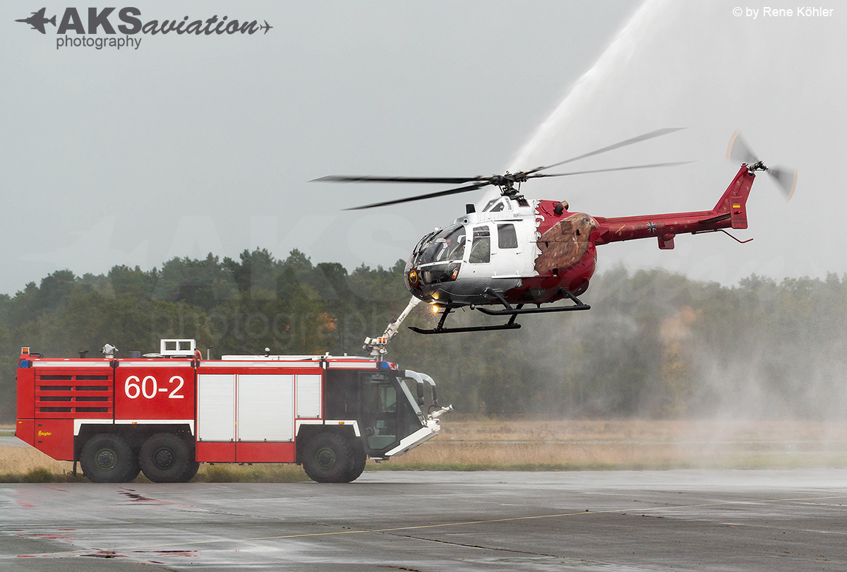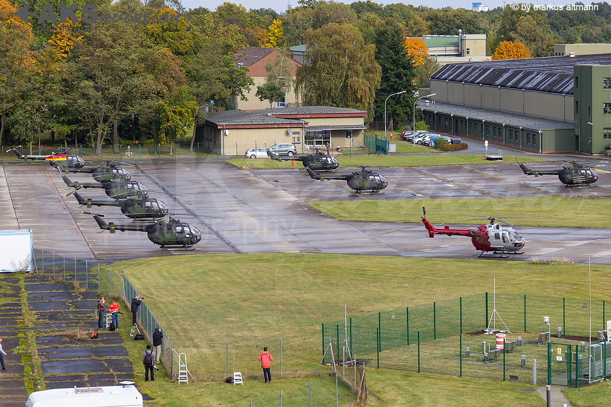 Für alle ehemaligen Piloten, Techniker und Soldaten die mit der Bo gearbeitet haben gab es dann im Oktober ein großes Abschiedsfest zum Flyout der Bo 105. Über 1000 geladene Gäste und ca. 230 Spotter machten sich auf den Weg nach Celle um sich von der Bo 105 zu verabschieden. Leider spielte das Wetter an diesem Tag im Oktober nicht wirklich mit und die Bo´s konnten ihr Können nur im Regen zeigen. Ein letztes Display wurde gezeigt und sich mit einer Siebener Formation  verabschiedet.