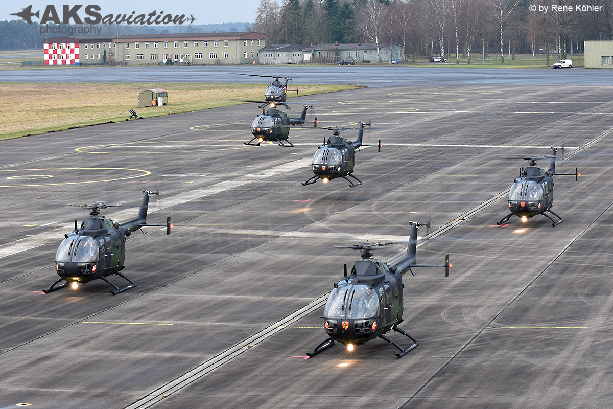 Den Anfang machte die Heeresfliegerunterstützungsstaffel 1 aus Holzdorf. Sie hatten mit dem Flyout im November 2012 und die Auflösung der Staffel Ende 2013 damit begonnen ihre Hubschrauber an andere Verbände zu übergeben. Vorher schon verloren Verbände wie das Mittlere Transporthubschrauber Regiment 15 in Rheine Bentlage ihre VBH Bo´s. 2013 wurde dann auch das Heeresfliegerregiment 26 im fränkischen Roth aufgelöst und die verbliebenden Bo´s auf die Standorte in Fritzlar und Celle verteilt. Im selben Jahr wurde auch die Heersfliegerverbindungd- und Aufklärungsstaffel 100 in Celle aufgelöst. Im Dezember 2014 gab dann auch das Kampfhubschrauberregiment 36 „Kurhessen“ aus Fritzlar ihre Bo 105 nach Celle ab und stellt komplett auf den Eurocopter Tiger um.