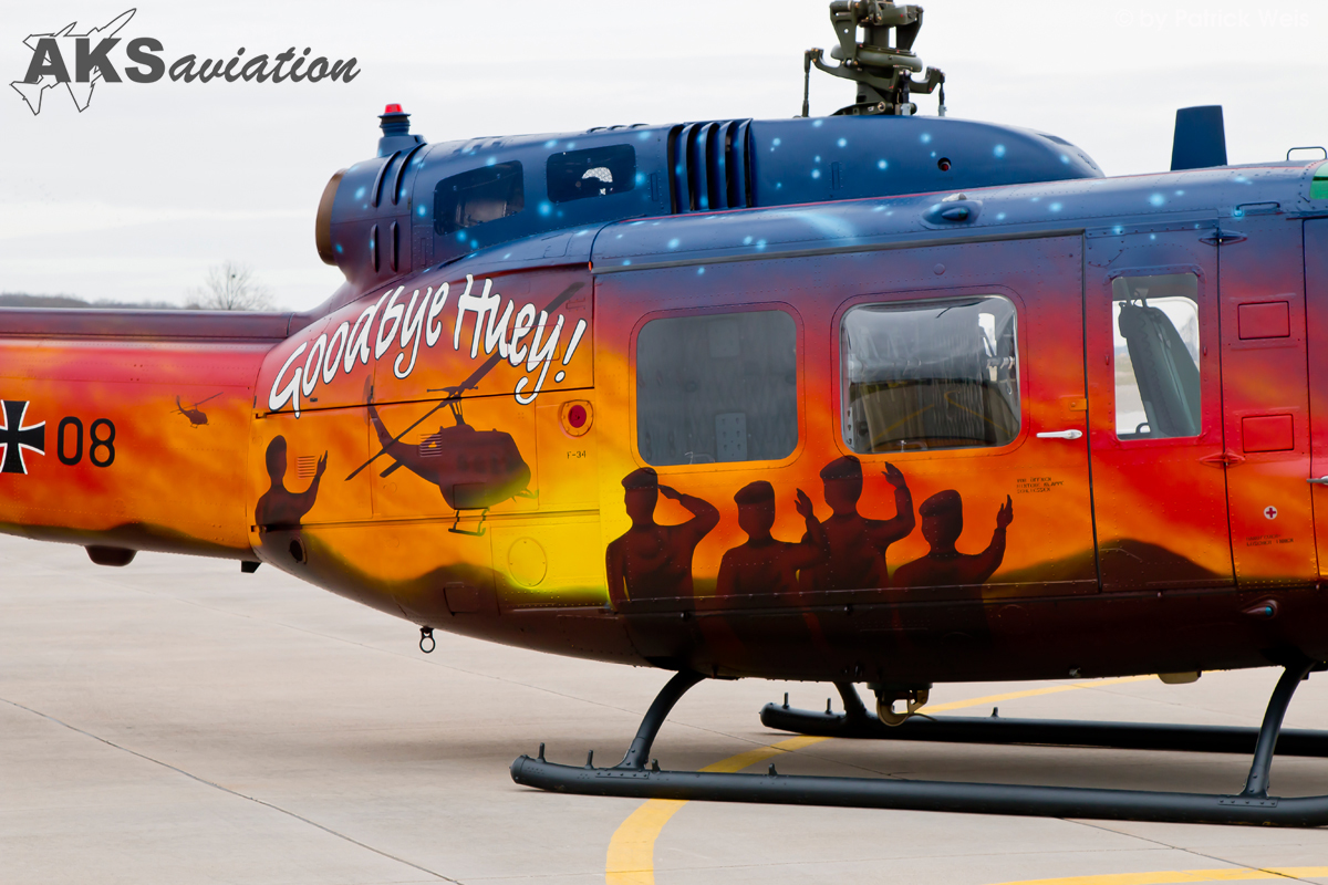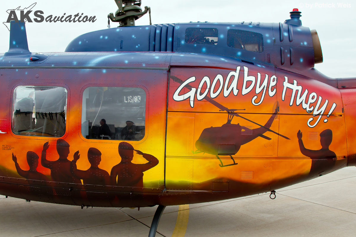 Ein trauriges Ende des sehr beliebten Hubschraubers wurde würdig mit einer Sonderlackierung zelebriert. Diese wird bis Anfang November 2020 eine große Tour durch Deutschland, Österreich, der Schweiz und Italien machen. Die aktuellen Termine können unter www.goodbyehuey.de nachgesehen werden. Eins wird definitiv sicher sein, wo die bunt lackierte Maschine landet, werden die Augen auf Sie gerichtet sein.